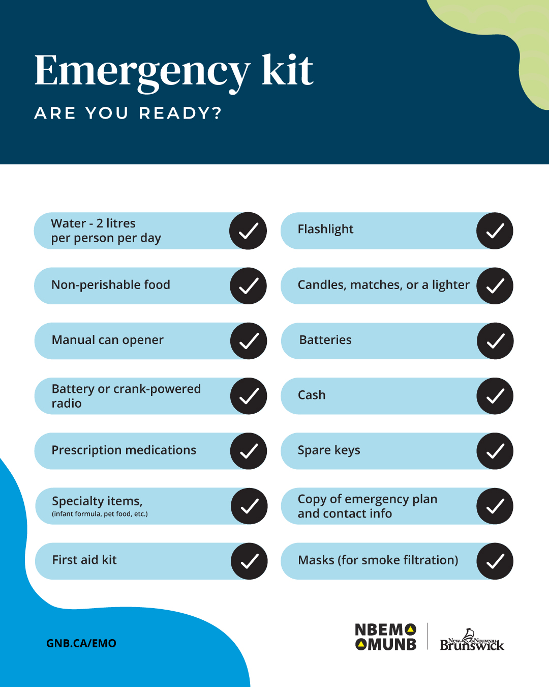 Always be prepared by having an emergency plan for your household. Create an emergency kit which includes essential items such as water, food, crank or battery-operated flashlights and radios, and medications.