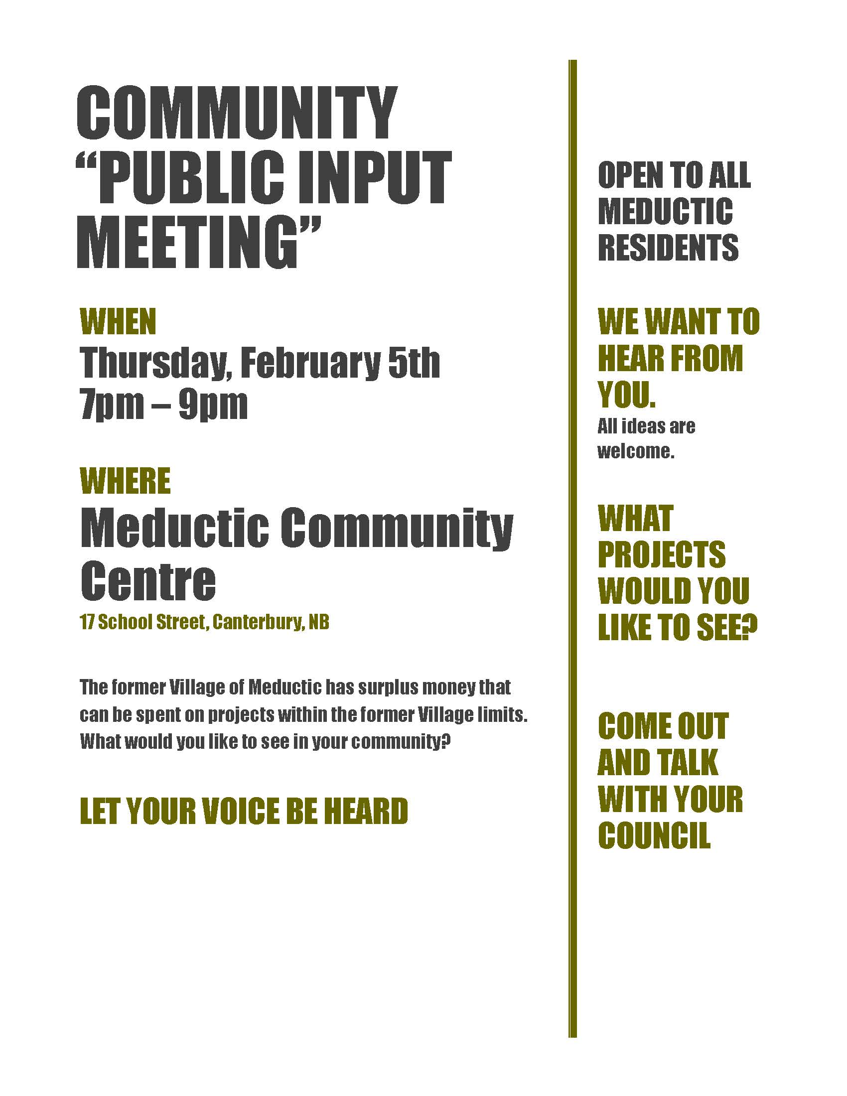 Meductic Community Public Input Meeting